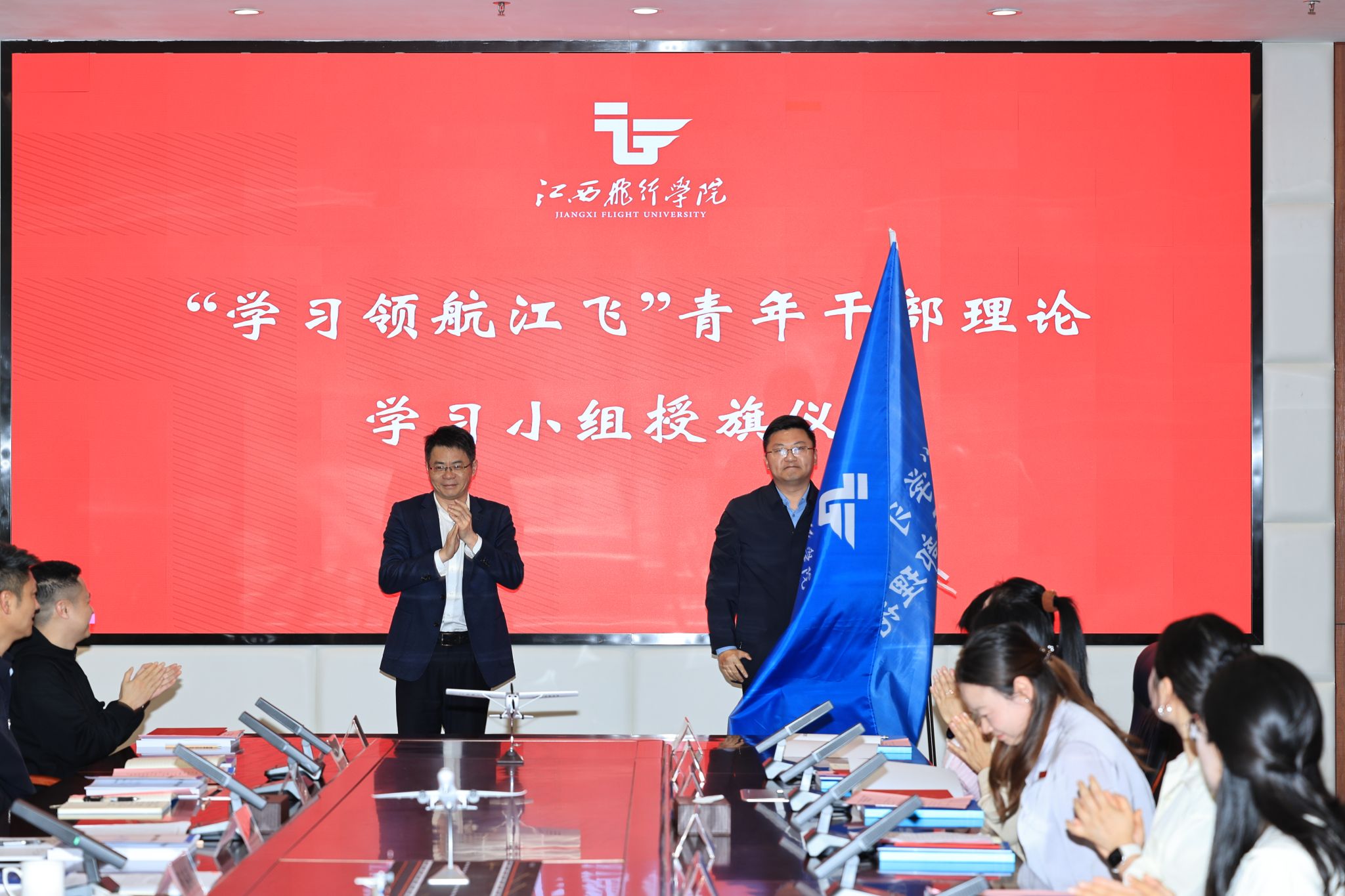 会上,学习小组副组长报告了2025年度青年干部理论学习小组学习情况和2026年度学习小组学习计划。学员代表发言并围绕“学习领航江飞”青年干部理论学习小组品牌建设积极建言献策。