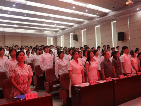 6月20日中午,学校2025年新团员入团仪式在二教学楼视频会议中心举行。校党委委员、副校长肖鸿晶出席并讲话,校团委负责人陈磊、副书记衷欣,各二级学院团总支负责人及老团员代表、2025年全体新团员参加仪式。