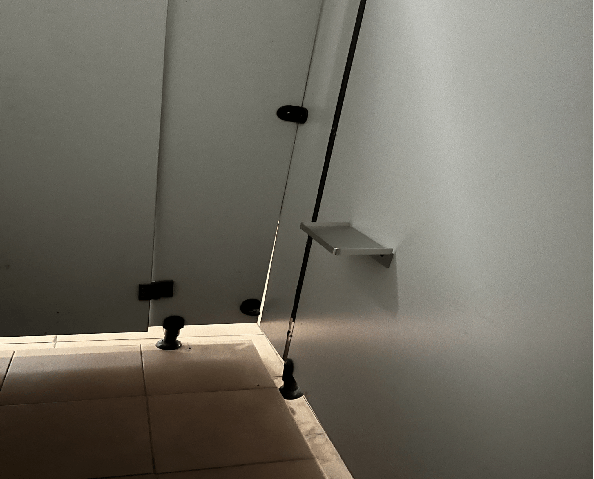 此次改造覆盖了近800个点位。置物架安装在蹲位侧墙一米左右的高度,符合人体工学取放习惯,可放置手机等小型物品,为广大师生提供更细节化、人性化的便利。