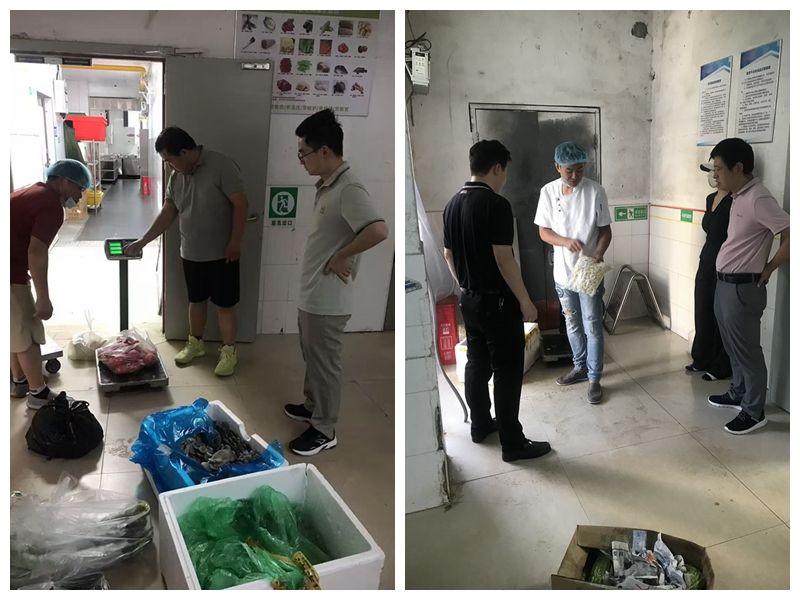 每天清晨,验收人员都仔细地比对配送清单,对配送物资的数量复核、重量复秤,检查菜品的质量,调味品的保质期,查验肉类品的“三证”。