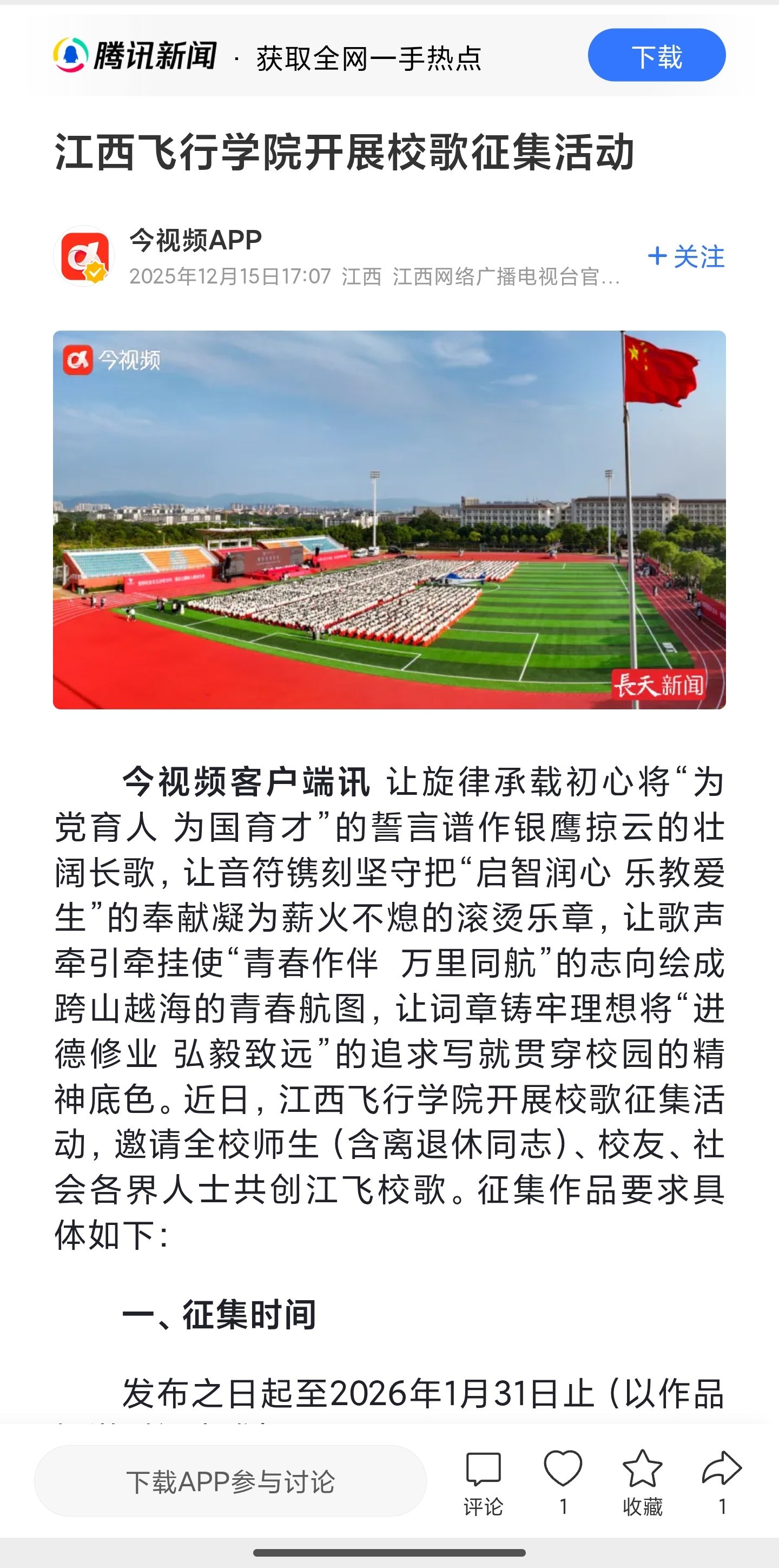 腾讯网:江西飞行学院开展校歌征集活动